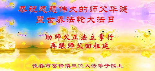 (Minghui.org) Changchun City, Jilin Province is Master Li Hongzhi’s hometown and where he began to teach Falun Dafa. As World Falun Dafa Day approaches, practitioners in Changchun send their greetings to wish revered Master Li a happy birthday and to celebrate the 33rd anniversary of Falun Dafa’s public introduction. In this report, we present a selection of the 18 greetings sent from Falun Dafa practitioners in Master’s hometown: