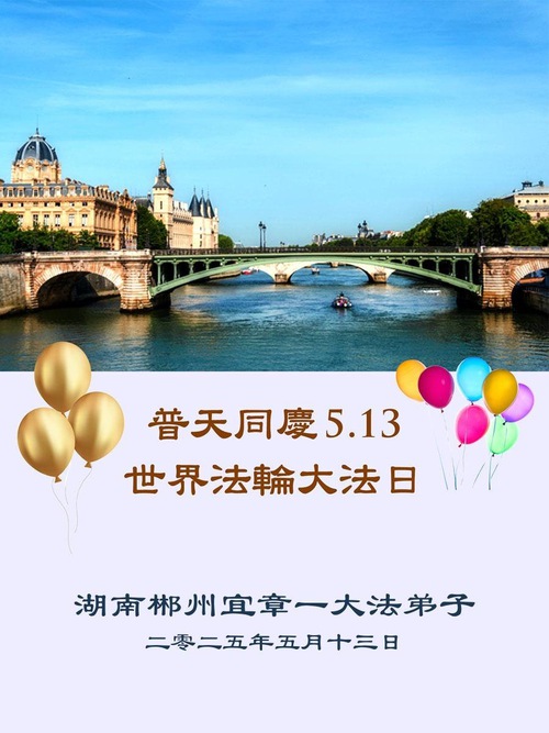 (Minghui.org) May 13, 2025, marks the 26th World Falun Dafa Day and the 33rd anniversary of the public introduction of Falun Dafa. The day is also the birthday of Master Li, the founder of Falun Dafa. Practitioners around the world are sending their heartfelt greetings to celebrate this grand occasion and honor revered Master on this special day.