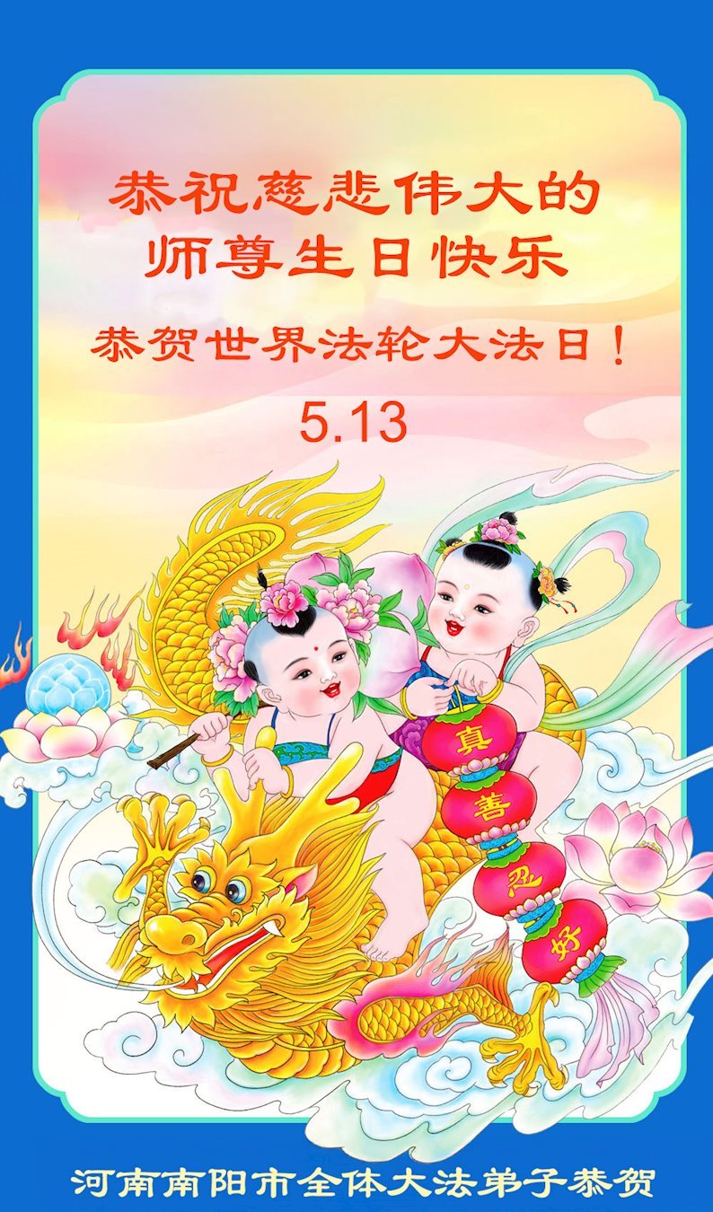 (Minghui.org) May 13, 2025, marks the 26th World Falun Dafa Day and the 33rd anniversary of the public introduction of Falun Dafa. The day is also the birthday of Master Li, the founder of Falun Dafa. Practitioners around the world are sending their heartfelt greetings to celebrate this grand occasion and honor revered Master on this special day.