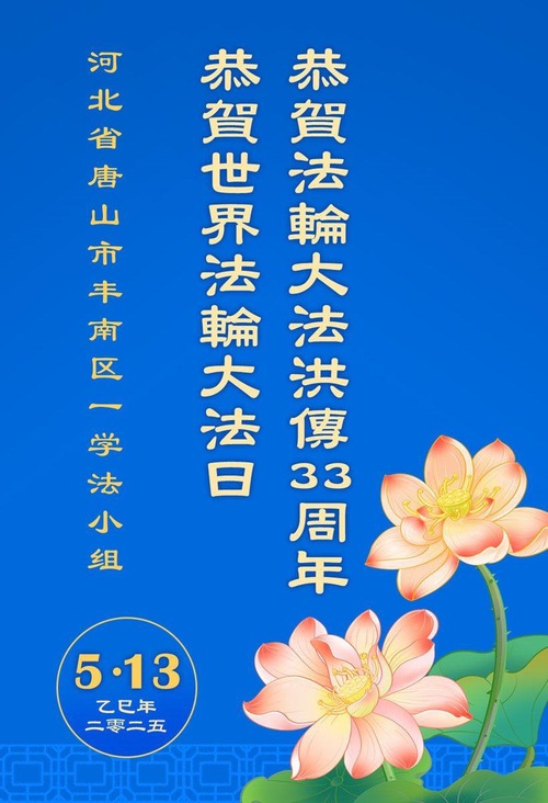 Falun Dafa Practitioners from Tangshan City Wish Revered Master a Happy Birthday and Celebrate World Falun Dafa Day!