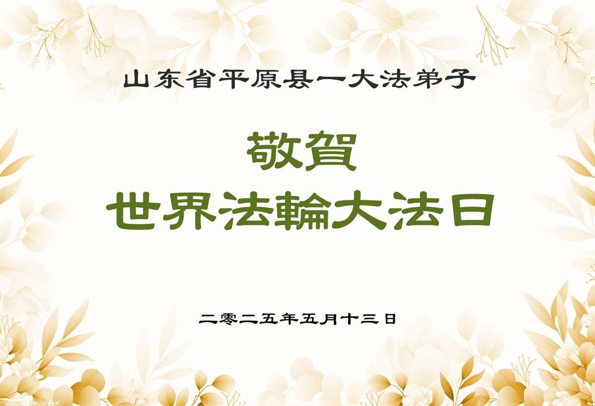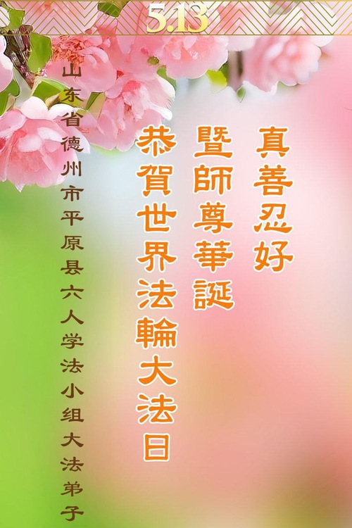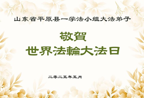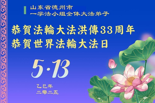 Falun Dafa Practitioners from Dezhou City Wish Revered Master a Happy Birthday and Celebrate World Falun Dafa Day!