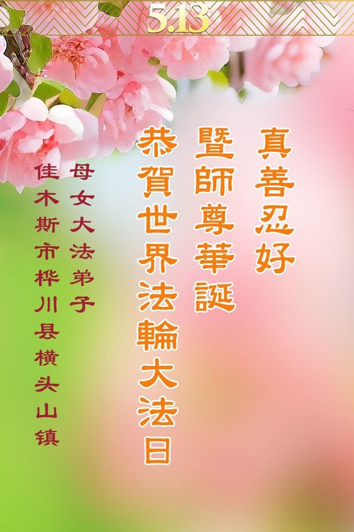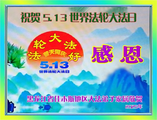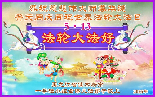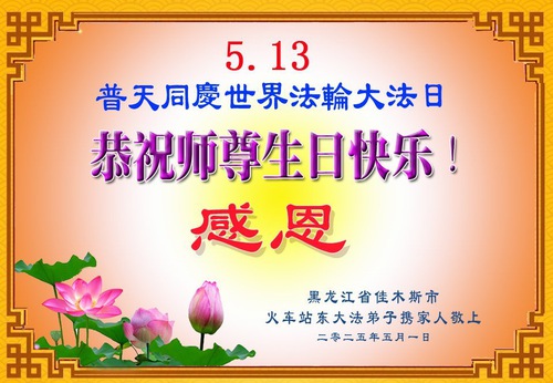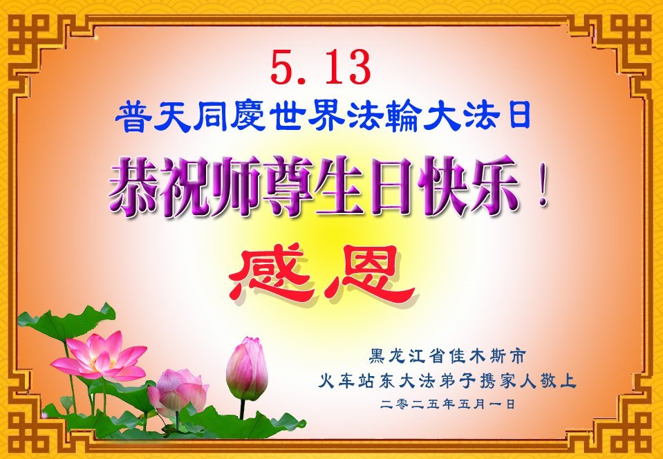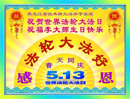 Falun Dafa Practitioners from Jiamusi City Wish Revered Master a Happy Birthday and Celebrate World Falun Dafa Day!