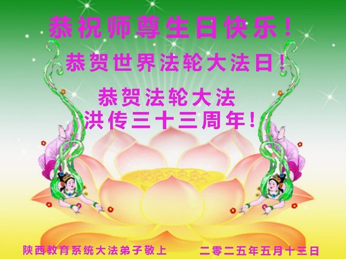 Falun Dafa Practitioners from Education System Wish Revered Master a Happy Birthday and Celebrate World Falun Dafa Day!
