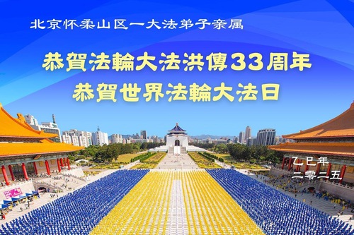 (Minghui.org) May 13, 2025, marks the 26th World Falun Dafa Day and the 33rd anniversary of the public introduction of Falun Dafa. The day is also the birthday of Master Li, the founder of Falun Dafa. Practitioners around the world send their heartfelt greetings to celebrate this grand occasion and honor revered Master on this special day.
