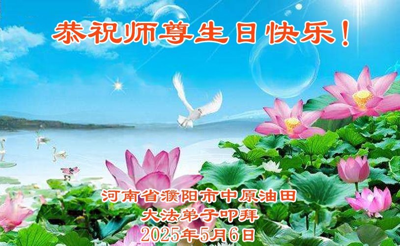 (Minghui.org) May 13, 2025, marks the 26th World Falun Dafa Day and the 33rd anniversary of the public introduction of Falun Dafa. The day is also the birthday of Master Li, the founder of Falun Dafa. Practitioners around the world send their heartfelt greetings to celebrate this grand occasion and honor revered Master on this special day.