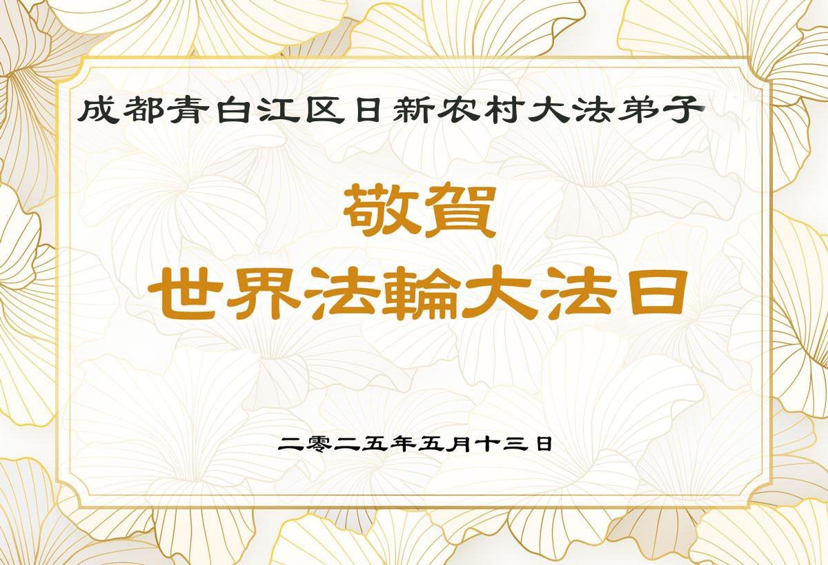 (Minghui.org) May 13, 2025, marks the 26th World Falun Dafa Day and the 33rd anniversary of the public introduction of Falun Dafa. The day is also the birthday of Master Li, the founder of Falun Dafa. Practitioners around the world send their heartfelt greetings to celebrate this grand occasion and honor revered Master on this special day.