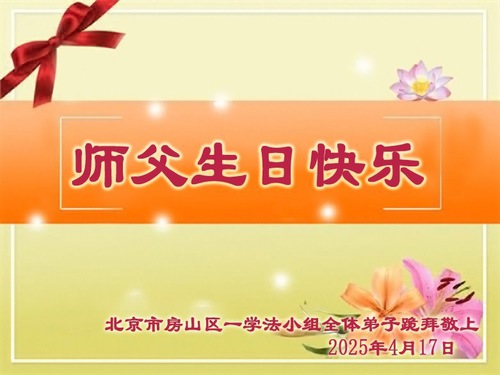 They expressed their gratitude to Master Li for introducing Falun Dafa and guiding and protecting them on their cultivation journeys. They wished him a happy birthday and vowed to solidly cultivate themselves and awaken the consciences of more people to be worthy of Master’s painstaking salvation.