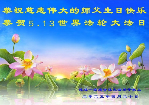 (Minghui.org) May 13, 2025, marks the 26th World Falun Dafa Day and the 33rd anniversary of the public introduction of Falun Dafa. The day is also the birthday of Master Li Hongzhi, the founder of Falun Dafa. Practitioners around the world are sending their heartfelt greetings to celebrate this grand occasion and honor revered Master on this special day.