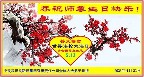 (Minghui.org) May 13, 2025, marks the 26th World Falun Dafa Day and the 33rd anniversary of the public introduction of Falun Dafa. The day is also the birthday of Master Li Hongzhi, the founder of Falun Dafa. Practitioners around the world are sending their heartfelt greetings to celebrate this grand occasion and honor revered Master on this special day.