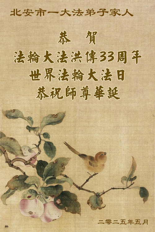 (Minghui.org) May 13, 2025, marks the 26th World Falun Dafa Day and the 33rd anniversary of the public introduction of Falun Dafa. The day is also the birthday of Master Li Hongzhi, the founder of Falun Dafa. Practitioners around the world are sending their heartfelt greetings to celebrate this grand occasion and honor revered Master on this special day.