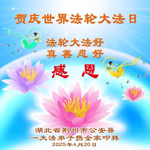 (Minghui.org) May 13, 2025, marks the 26th World Falun Dafa Day and the 33rd anniversary of the public introduction of Falun Dafa. The day is also the birthday of Master Li Hongzhi, the founder of Falun Dafa. Practitioners around the world are sending their heartfelt greetings to celebrate this grand occasion and honor revered Master on this special day.