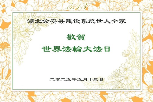 In this report, we present a selection of the 18 greetings sent from Falun Dafa practitioners in Hubei Province, China.