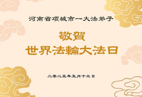 (Minghui.org) May 13, 2025, marks the 26th World Falun Dafa Day and the 33rd anniversary of the public introduction of Falun Dafa. The day is also the birthday of Master Li Hongzhi, the founder of Falun Dafa. Practitioners around the world are sending their heartfelt greetings to celebrate this grand occasion and honor revered Master on this special day.