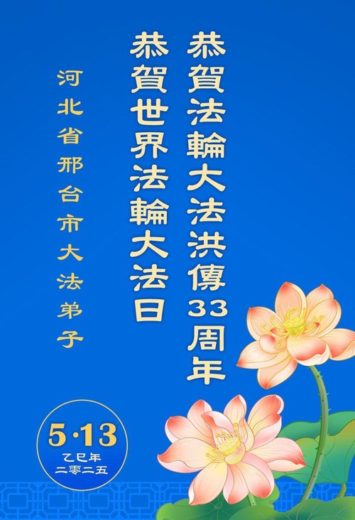 (Minghui.org) May 13, 2025, marks the 26th World Falun Dafa Day and the 33rd anniversary of the public introduction of Falun Dafa. The day is also the birthday of Master Li Hongzhi, the founder of Falun Dafa. Practitioners around the world are sending their heartfelt greetings to celebrate this grand occasion and honor revered Master on this special day.