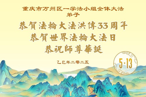 Falun Dafa Practitioners from Chongqing Wish Revered Master a Happy Birthday and Celebrate World Falun Dafa Day!