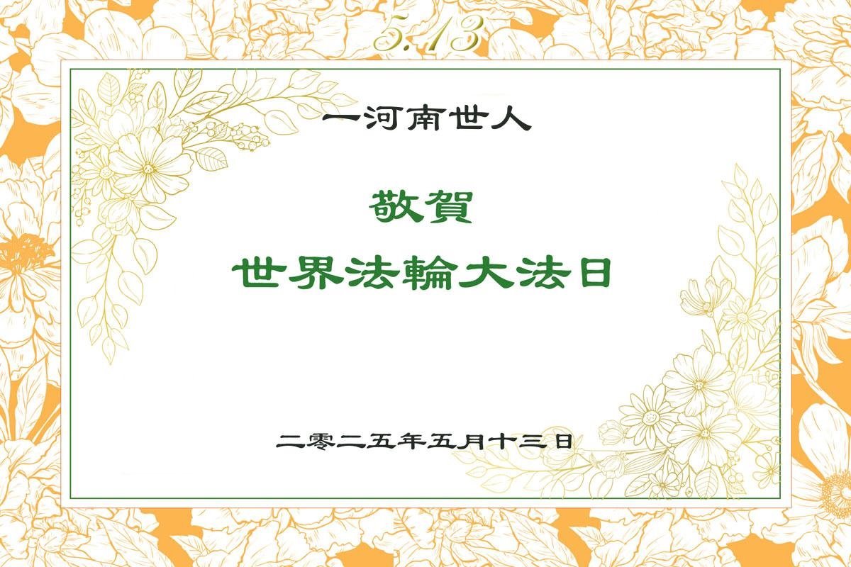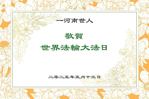 (Minghui.org) May 13, 2025, marks the 26th World Falun Dafa Day and the 33rd anniversary of the public introduction of Falun Dafa. The day is also the birthday of Master Li Hongzhi, the founder of Falun Dafa. Practitioners around the world are sending their heartfelt greetings to celebrate this grand occasion and honor revered Master on this special day.