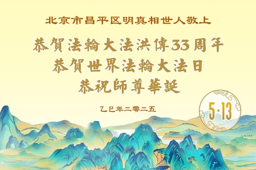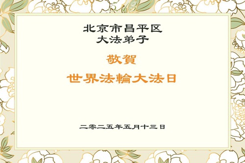 Falun Dafa Practitioners from Beijing Wish Revered Master a Happy Birthday and Celebrate World Falun Dafa Day!
