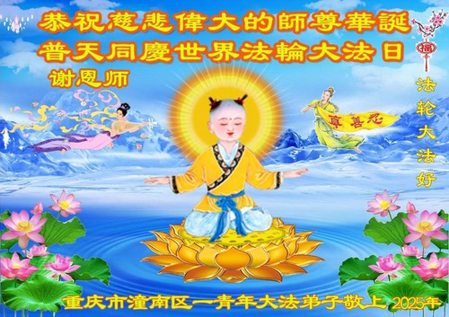 (Minghui.org) May 13, 2025, marks the 26th World Falun Dafa Day and the 33rd anniversary of the public introduction of Falun Dafa. The day is also the birthday of Master Li Hongzhi, the founder of Falun Dafa. Practitioners around the world are sending their heartfelt greetings to celebrate this grand occasion and honor revered Master on this special day.