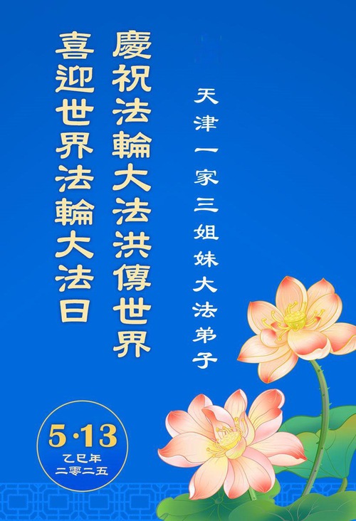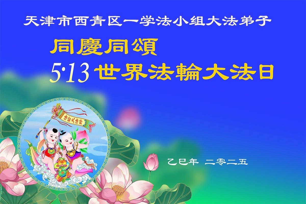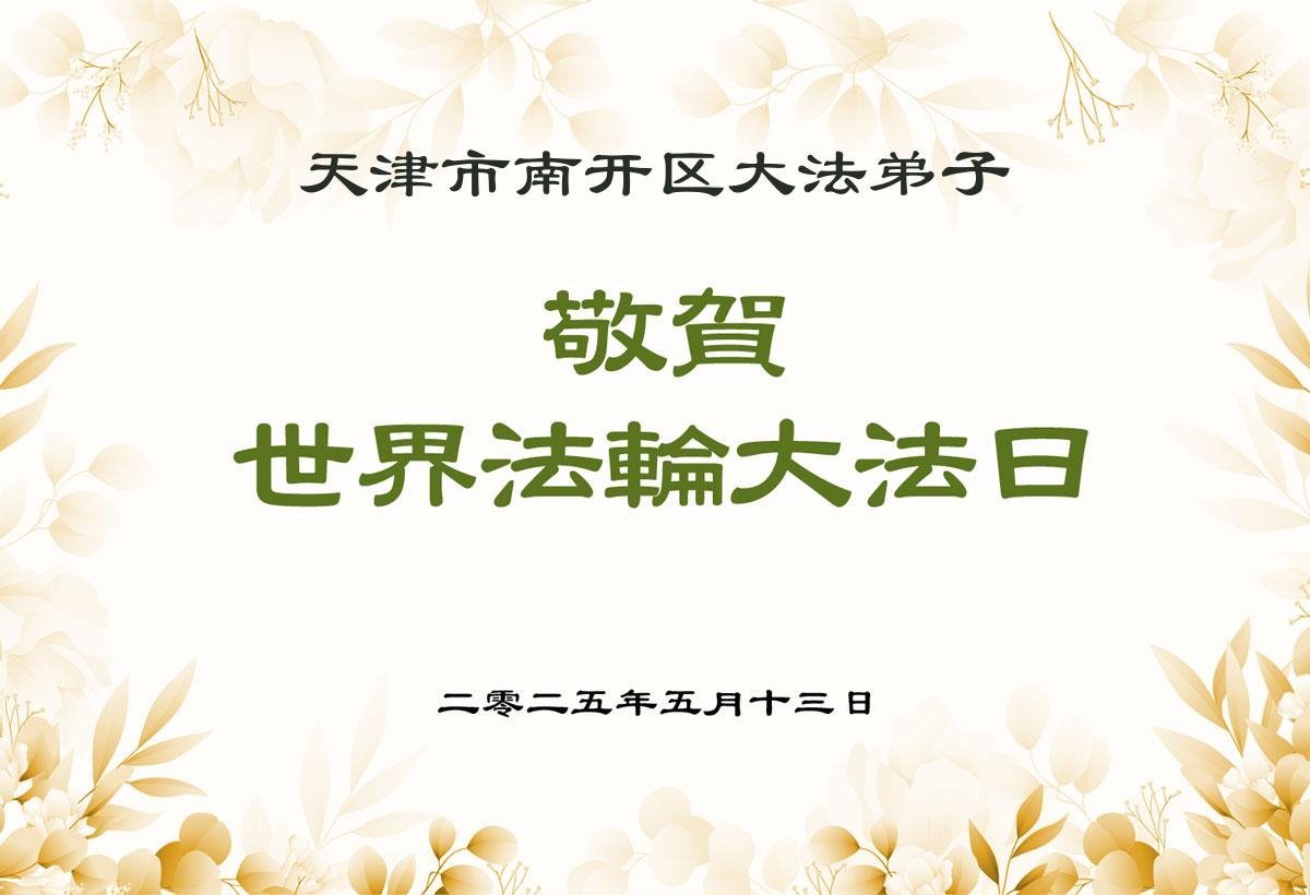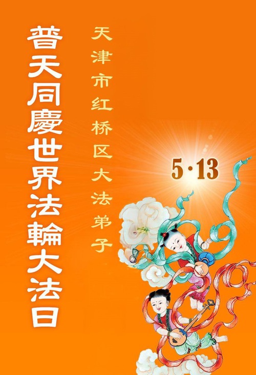 Falun Dafa Practitioners from Tianjin Wish Revered Master a Happy Birthday and Celebrate World Falun Dafa Day!