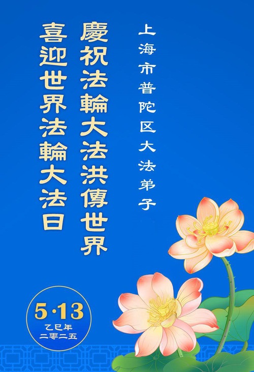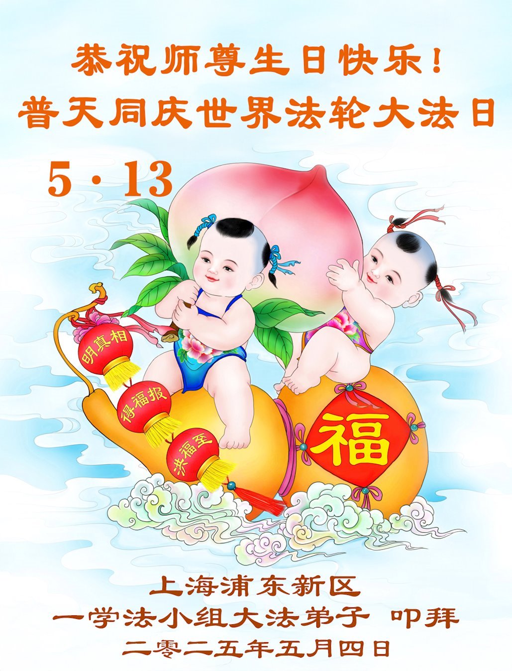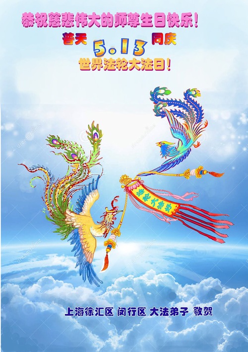 Falun Dafa Practitioners from Shanghai Wish Revered Master a Happy Birthday and Celebrate World Falun Dafa Day!