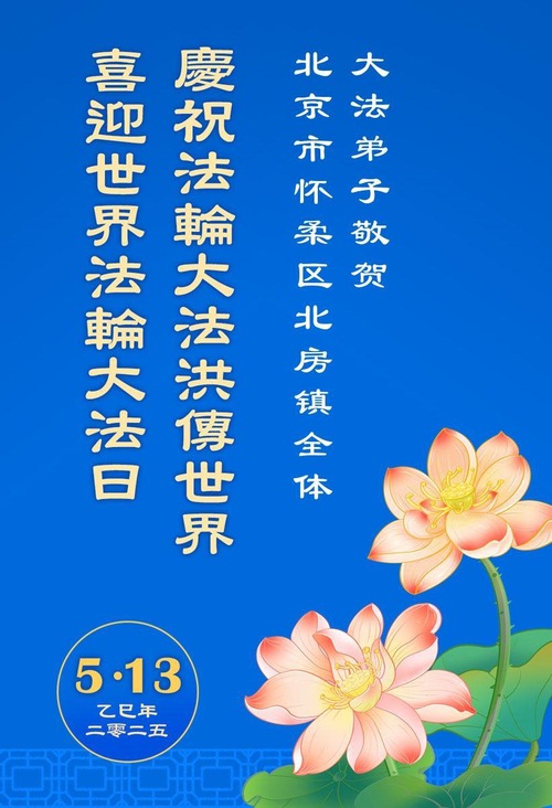 Falun Dafa Practitioners from Beijing Wish Revered Master a Happy Birthday and Celebrate World Falun Dafa Day!