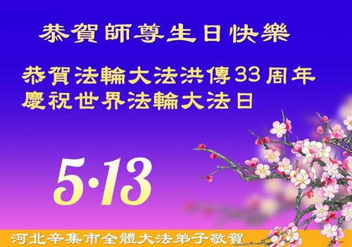 Falun Dafa Practitioners from Shijiazhuang City Wish Revered Master a Happy Birthday and Celebrate World Falun Dafa Day!