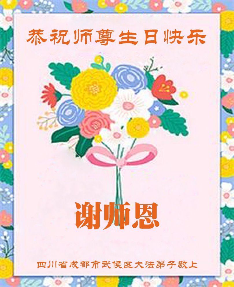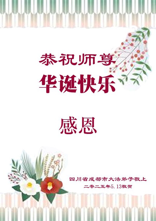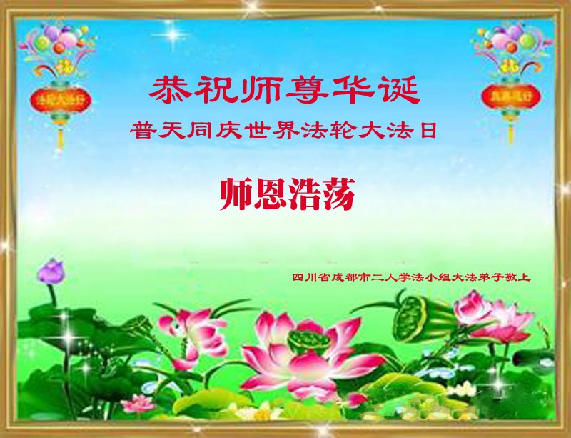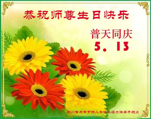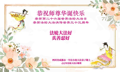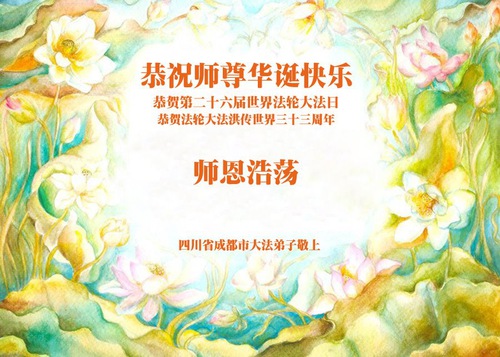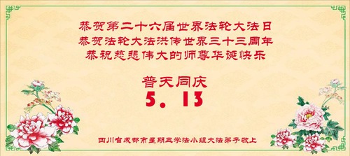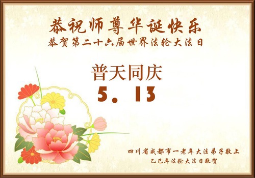In this report, we present a selection of the 18 greetings sent from Falun Dafa practitioners in Chengdu City, Sichuan Province, China.