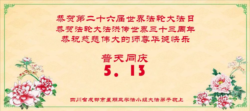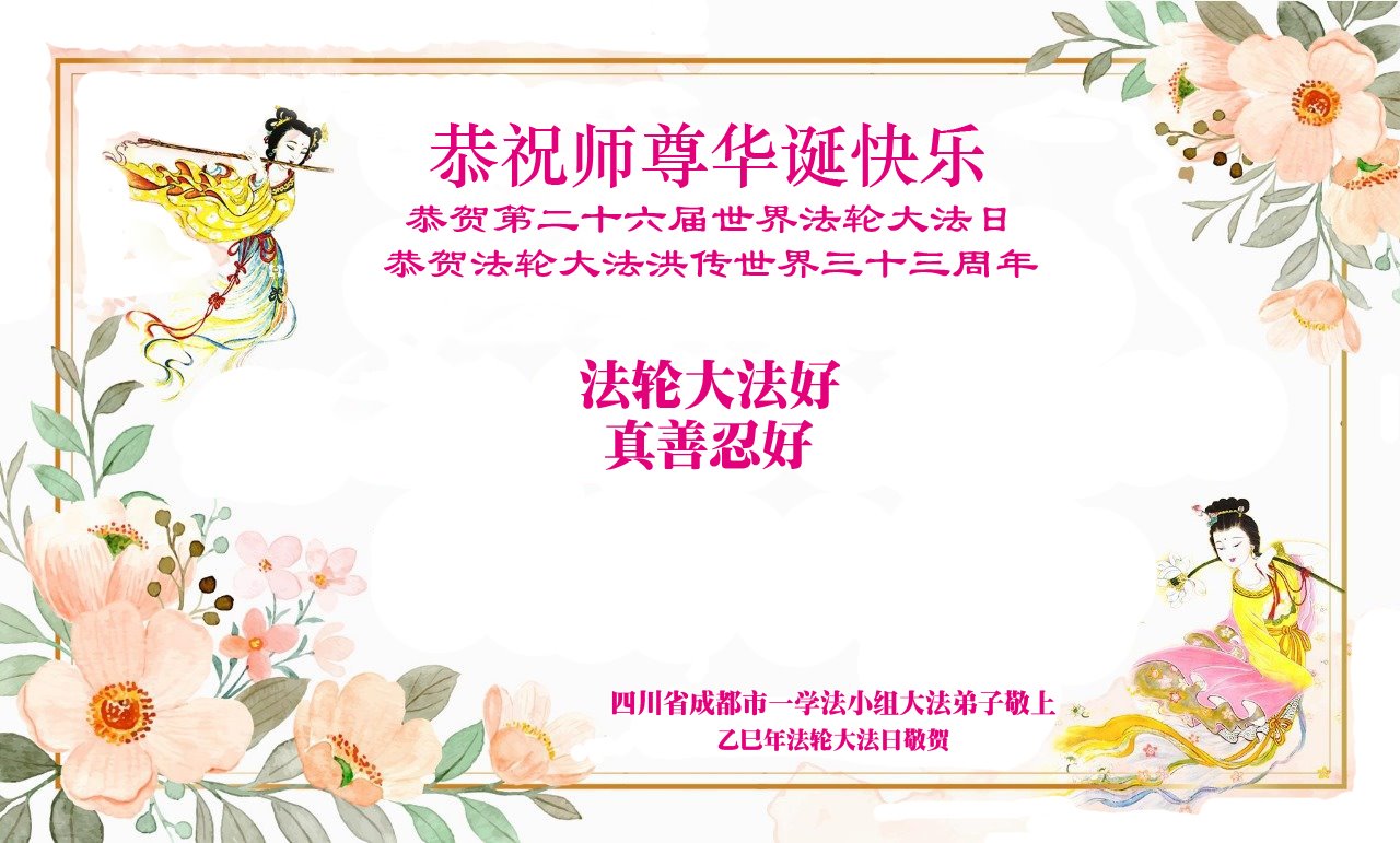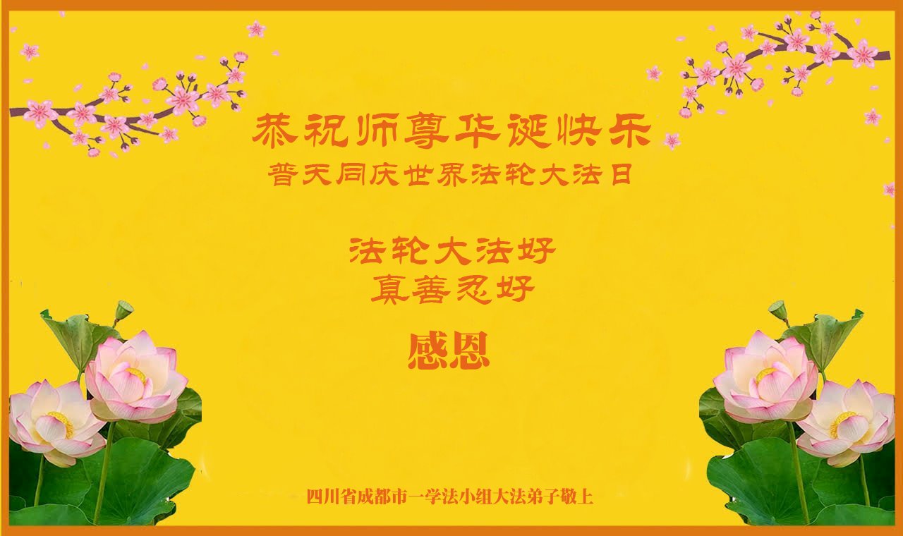 Falun Dafa Practitioners from Chengdu City Wish Revered Master a Happy Birthday and Celebrate World Falun Dafa Day!