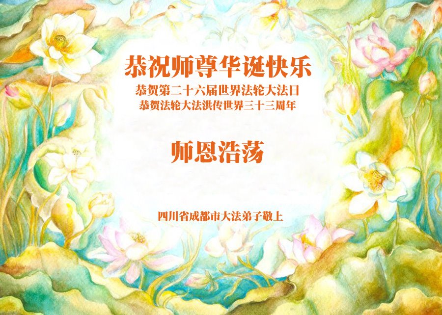 (Minghui.org) May 13, 2025, marks the 26th World Falun Dafa Day and the 33rd anniversary of the public introduction of Falun Dafa. The day is also the birthday of Master Li, the founder of Falun Dafa. Practitioners around the world are sending their heartfelt greetings to celebrate this grand occasion and honor revered Master on this special day.