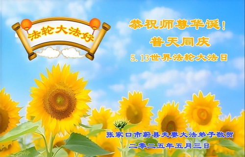 In this report, we present a selection of the 20 greetings sent from Falun Dafa practitioners in Zhangjiakou City, Hebei Province, China.
