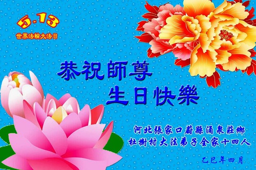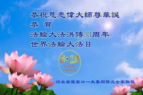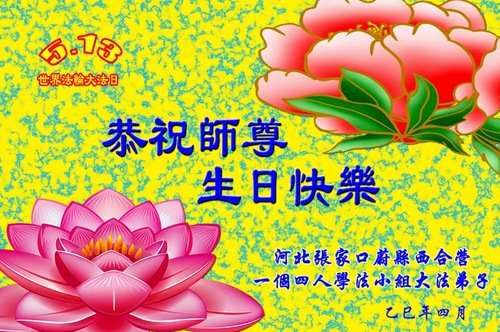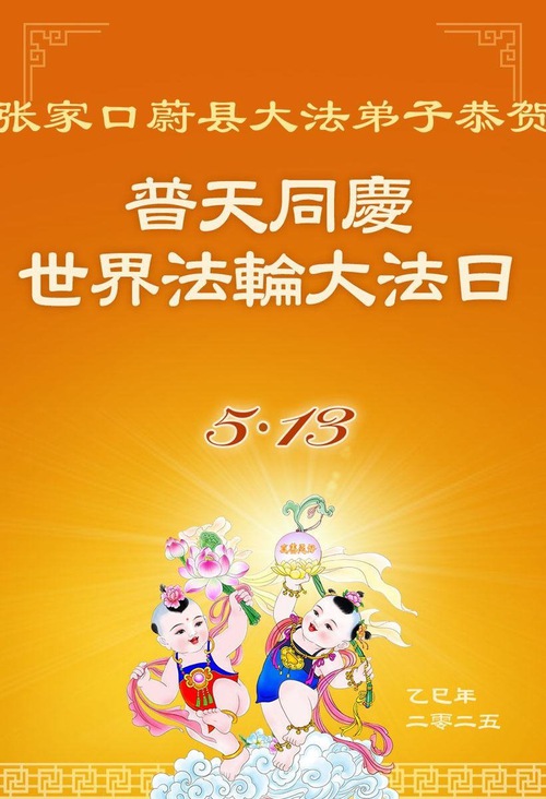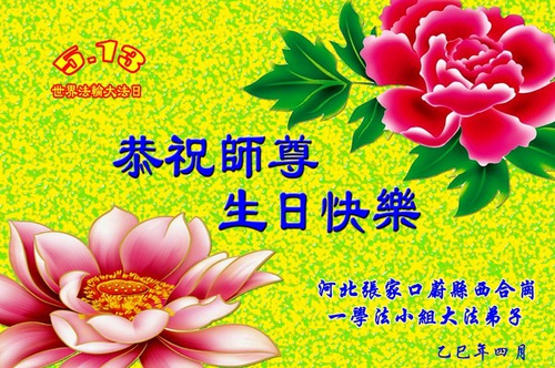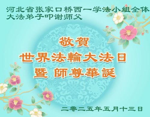 Falun Dafa Practitioners from Zhangjiakou City Wish Revered Master a Happy Birthday and Celebrate World Falun Dafa Day!