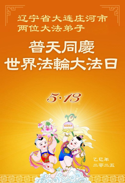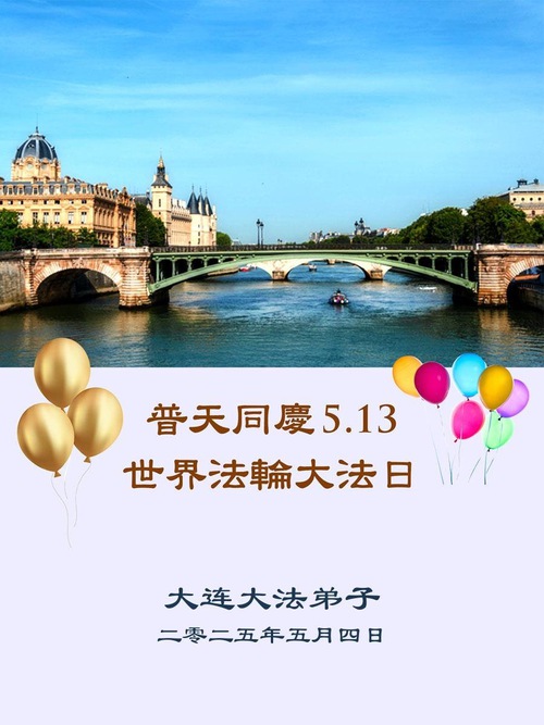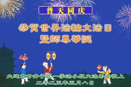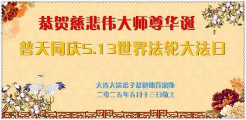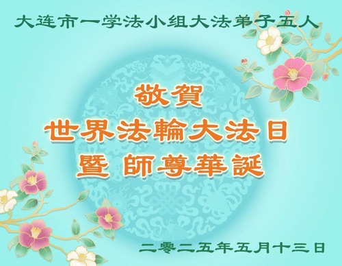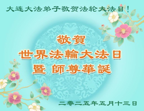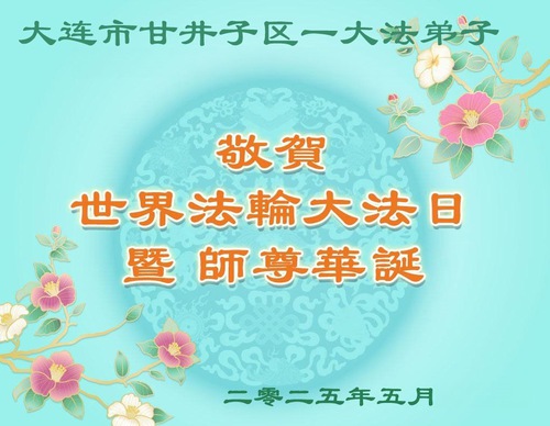 Falun Dafa Practitioners from Dalian City Wish Revered Master a Happy Birthday and Celebrate World Falun Dafa Day!
