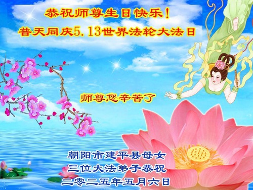 (Minghui.org) May 13, 2025, marks the 26th World Falun Dafa Day and the 33rd anniversary of the public introduction of Falun Dafa. The day is also the birthday of Master Li, the founder of Falun Dafa. Practitioners around the world send their heartfelt greetings to celebrate this grand occasion and to honor revered Master on this special day.