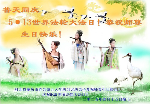 Falun Dafa Practitioners from Weifang City Wish Revered Master a Happy Birthday and Celebrate World Falun Dafa Day!