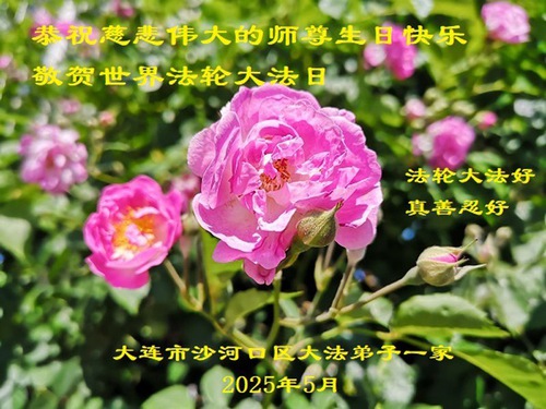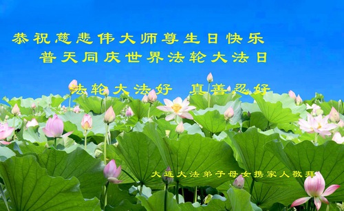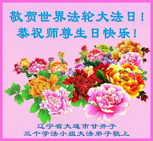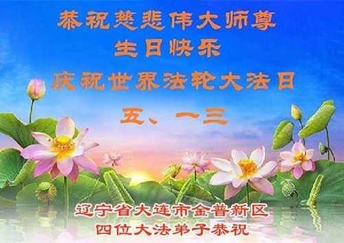 Falun Dafa Practitioners from Dalian City Wish Revered Master a Happy Birthday and Celebrate World Falun Dafa Day!