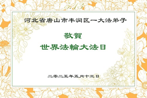 Falun Dafa Practitioners from Tangshan City Wish Revered Master a Happy Birthday and Celebrate World Falun Dafa Day!
