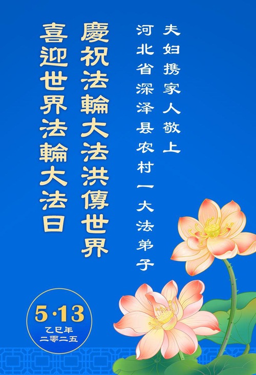 (Minghui.org) May 13, 2025, marks the 26th World Falun Dafa Day and the 33rd anniversary of the public introduction of Falun Dafa. The day is also the birthday of Master Li, the founder of Falun Dafa. Practitioners around the world send their heartfelt greetings to celebrate this grand occasion and to honor revered Master on this special day.