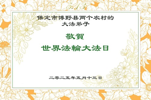 Falun Dafa Practitioners from the Countryside Wish Revered Master a Happy Birthday and Celebrate World Falun Dafa Day!