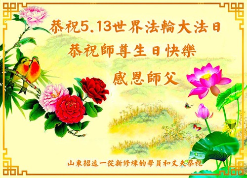 Falun Dafa Practitioners from Shandong Province Wish Revered Master a Happy Birthday and Celebrate World Falun Dafa Day!