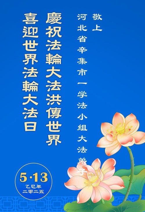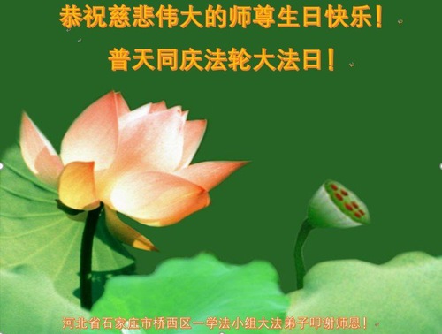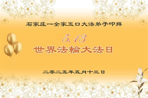 Falun Dafa Practitioners from Shijiazhuang City Wish Revered Master a Happy Birthday and Celebrate World Falun Dafa Day!