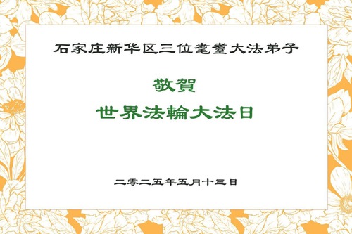 In this report, we present a selection of the 19 greetings sent from Falun Dafa practitioners in Shijiazhuang City, Hebei Province, China.