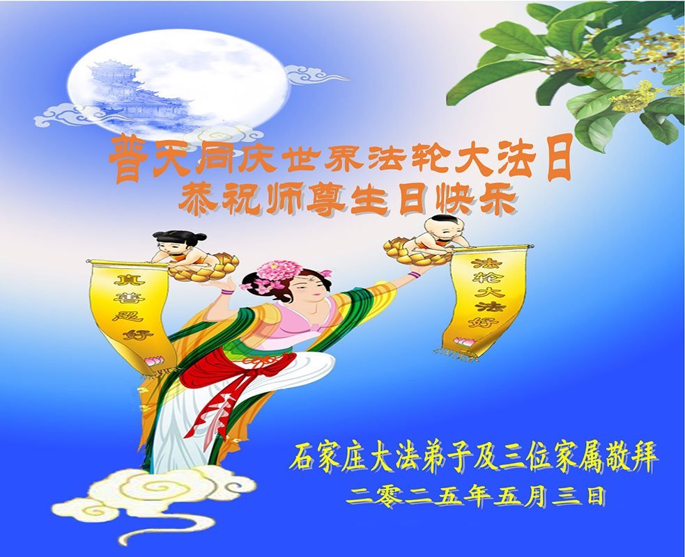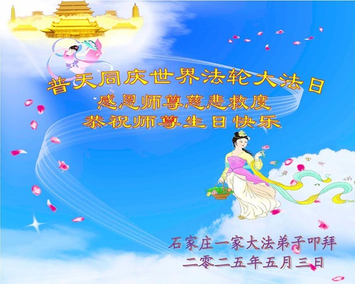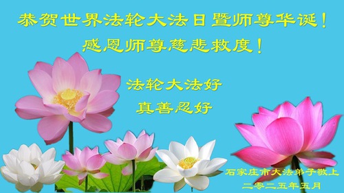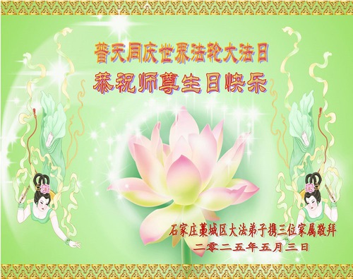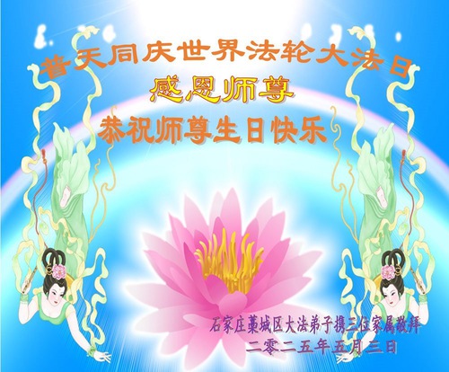 Falun Dafa Practitioners from Shijiazhuang City Wish Revered Master a Happy Birthday and Celebrate World Falun Dafa Day!