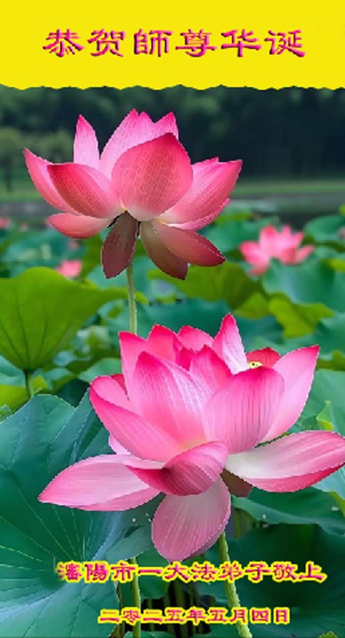 (Minghui.org) May 13, 2025, marks the 26th World Falun Dafa Day and the 33rd anniversary of the public introduction of Falun Dafa. The day is also the birthday of Master Li, the founder of Falun Dafa. Practitioners around the world send their heartfelt greetings to celebrate this grand occasion and to honor revered Master on this special day.