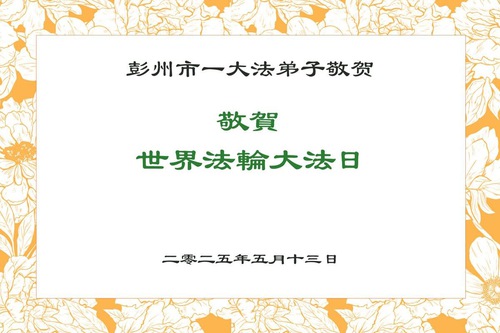 (Minghui.org) May 13, 2025, marks the 26th World Falun Dafa Day and the 33rd anniversary of the public introduction of Falun Dafa. The day is also the birthday of Master Li, the founder of Falun Dafa. Practitioners around the world convey their heartfelt greetings to celebrate this grand occasion and to honor revered Master on this special day.