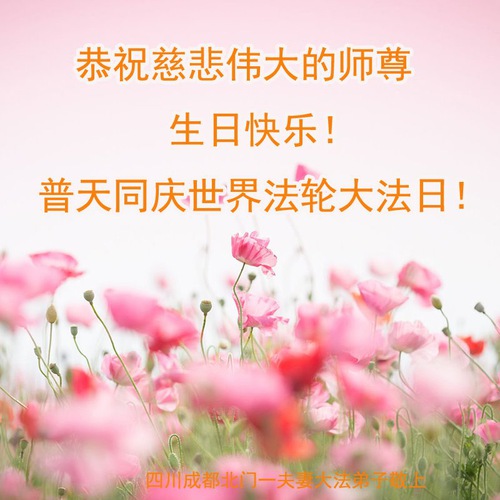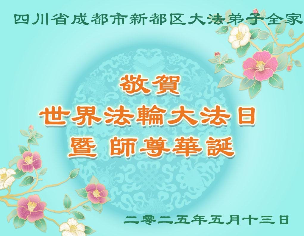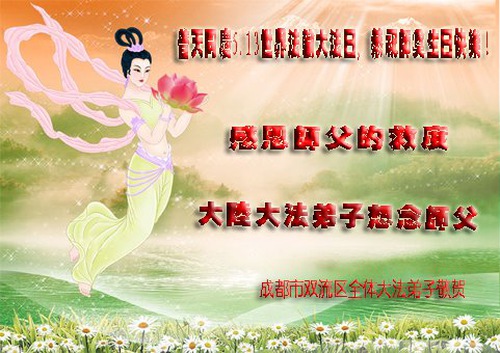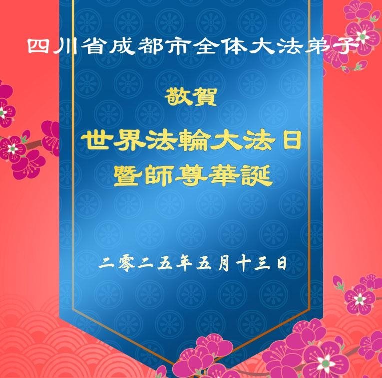 Falun Dafa Practitioners from Chengdu City Wish Revered Master a Happy Birthday and Celebrate World Falun Dafa Day!