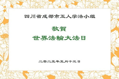 In this report, we present a selection of the 21 greetings sent from Falun Dafa practitioners in Chengdu City, Sichuan Province, China.