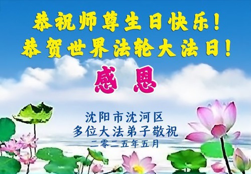 Falun Dafa Practitioners from Shenyang City Wish Revered Master a Happy Birthday and Celebrate World Falun Dafa Day!