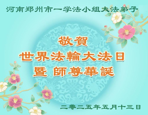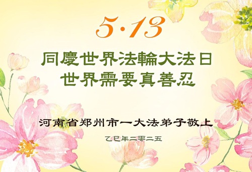 Falun Dafa Practitioners from Zhengzhou City Wish Revered Master a Happy Birthday and Celebrate World Falun Dafa Day!