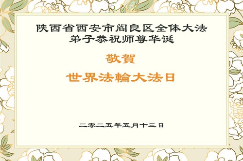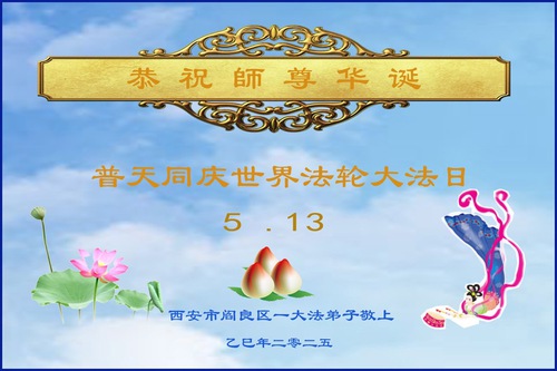 Falun Dafa Practitioners from Xi’an City Wish Revered Master a Happy Birthday and Celebrate World Falun Dafa Day!