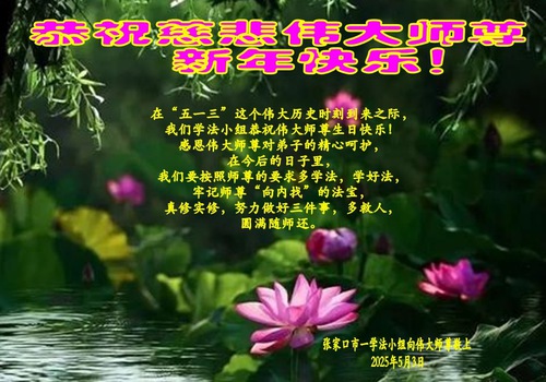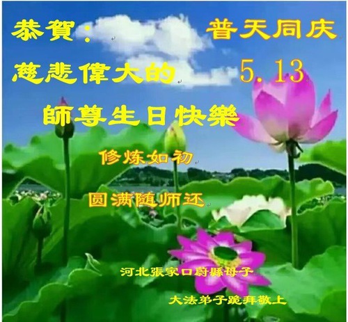 Falun Dafa Practitioners from Zhangjiakou City Wish Revered Master a Happy Birthday and Celebrate World Falun Dafa Day!